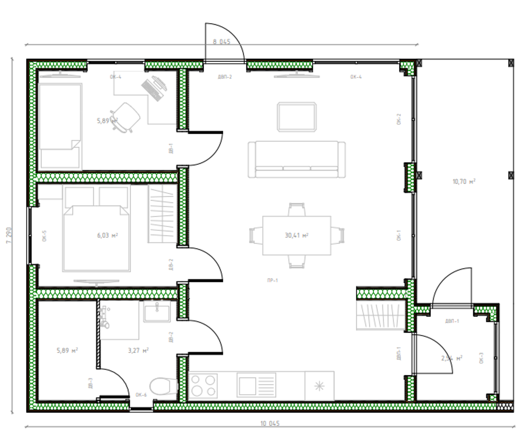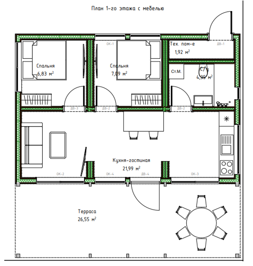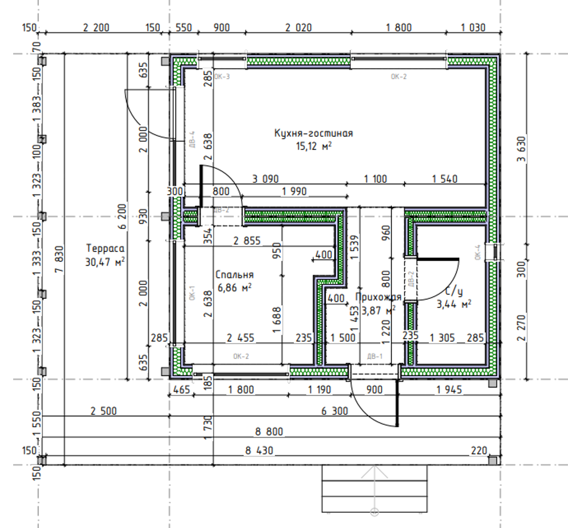 Большие окна обеспечивают отличную инсоляцию и визуально расширяют пространство, создавая уютную атмосферу внутри.