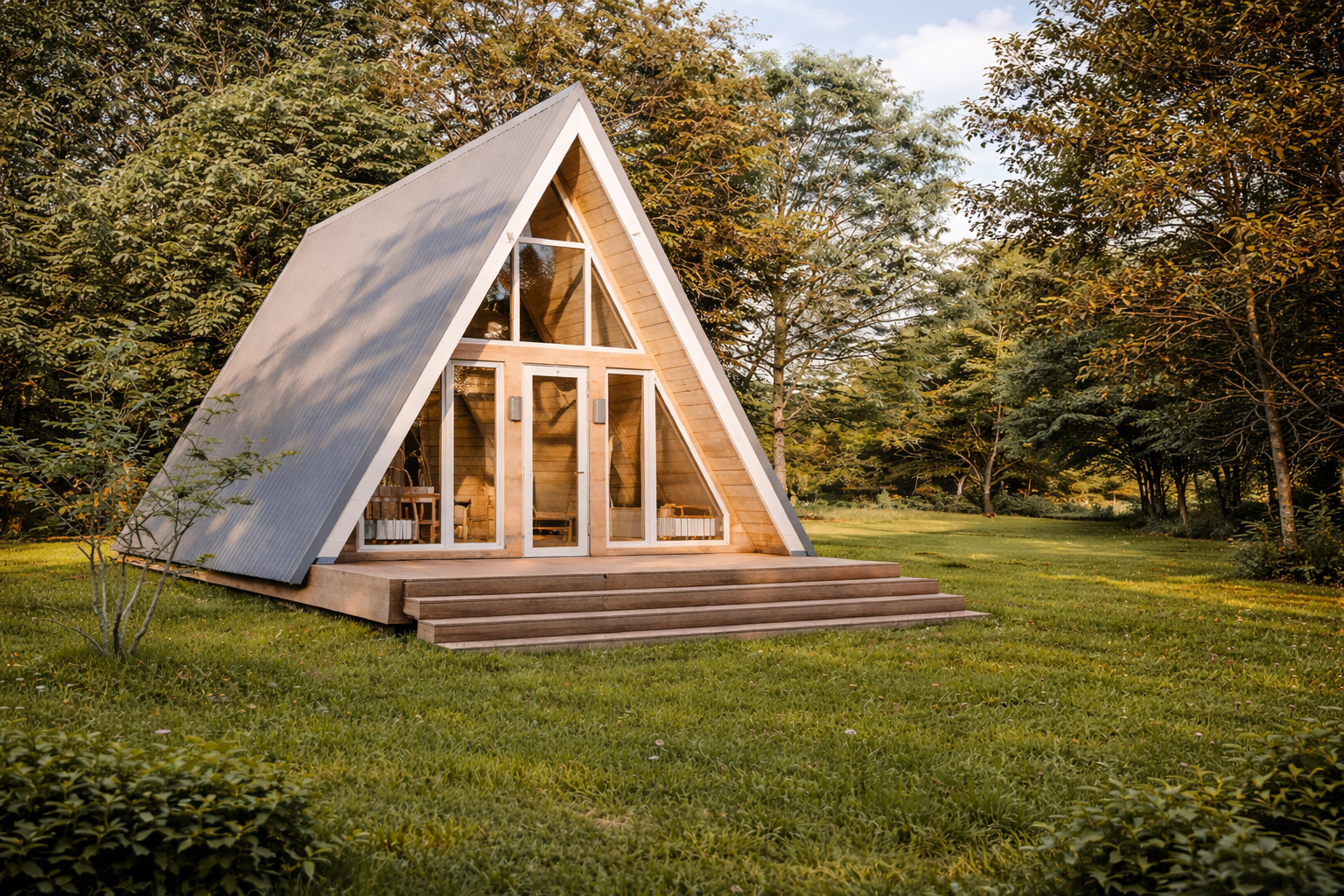 Современный дом формата A-frame — это идеальное сочетание архитектурной выразительности, уюта и функциональности. Лаконичная треугольная форма делает проект не только стильным, но и максимально эффективным с точки зрения пространства и энергоэффективности.