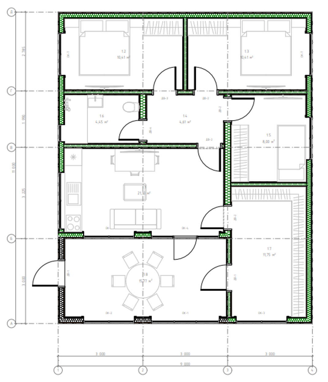 Модули собираются у нас на производстве. В назначенную дату привозим и монтируем у Вас на участке. Минимум грязи на участке, но есть ограничение по планировке из - за инженерных особенностей стыковки модулей.
